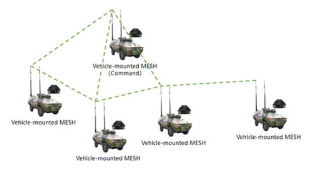 During the vehicle's journey, multiple vehicles are arranged in a chain formation. When the vehicle group travels on winding mountain roads, due to the limitations of the terrain and the obstructive environment, direct communication between individual jump nodes may not be possible. The on-board ad hoc network radio can connect to the command vehicle through multiple hops via any connectable nodes. In applications involving extremely long vehicle groups, dual-frequency ad hoc network nodes can be selected, which will further reduce the loss of multiple hops and improve the communication quality of the network.